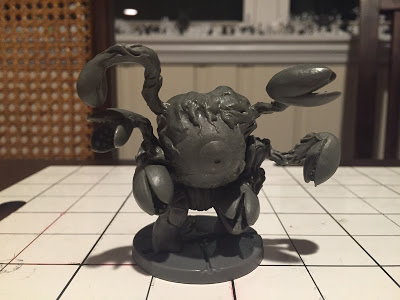 I ad-hoc statted this utterly horrifying clusterfuck on legs, though I kind of wish I had just up-statted a chuul. Anyway, its most important stat (Multiattack) was lifted from the chuul, since I had faced two in Louis’s Reborn game, about 26 hours earlier, and found them to be a great fight. I also gave it a huge pile of hit points (200), otherwise forgettable defenses (13 AC, +2 on Con saves, otherwise +0 or +1), and a leap attack that caused a knockdown effect in an area.
